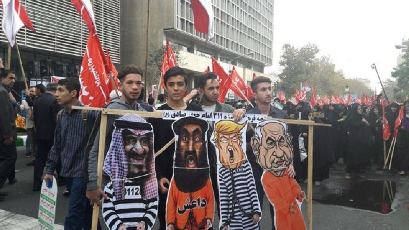 Bugün Tahran'da ABD eski casusluk yuvası önünde bir araya gelerek Müstekbirlikle mücadele törenine katılan öğrenci teşkilatları, bu koduyla ilgili yayınladıkları bildiride "ABD'ye Ölüm" sloganının devam etmesi zaruretini bildirdiler