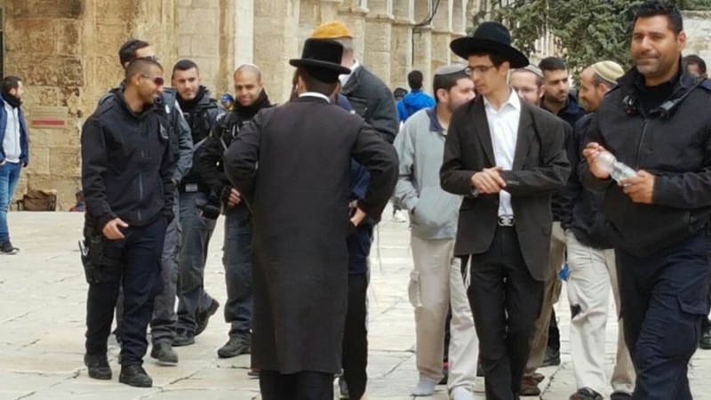 İşgal güçleri himayesinde Mescid-i Aksa'nın avlusunda dolaşan Yahudi yerleşimcilerin provokatif davranışlar sergiledikleri belirtildi.
