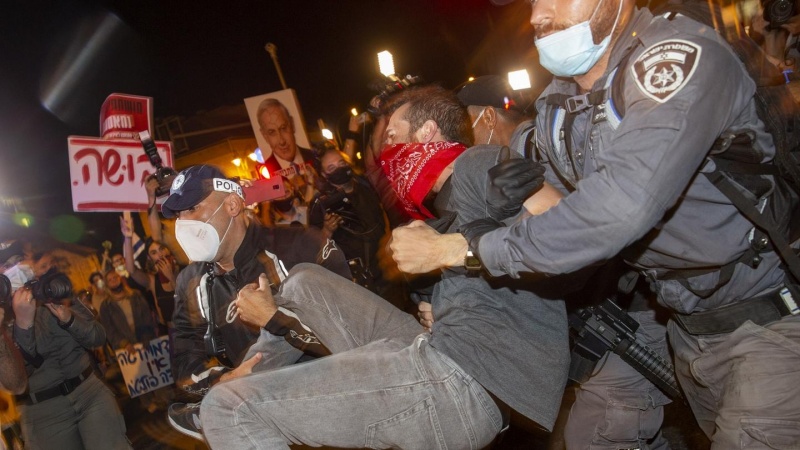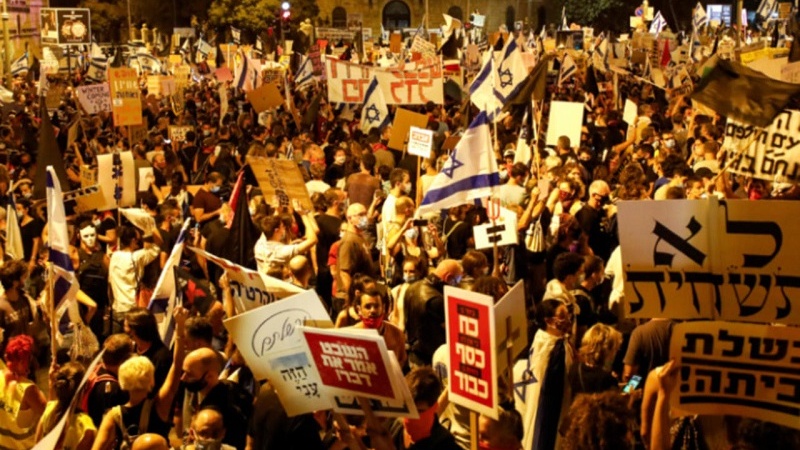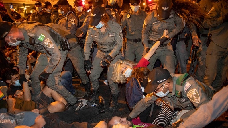 İşgal altındaki Kudüs'te Yahudi topluluklar Siyonist rejim başbakanı Netanyahu'nun Koronavirüsle mücadelede başarısızlığı ve yönetimdeki yolsuzlukları protesto etti. Siyonist rejim polisi onlarca protestocuyu gözaltına aldı.