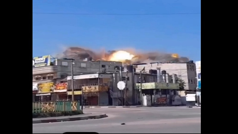 Gazze'de bir yerleşim alanının Siyonist Rejim uçaklarınca vurulduğu anlar