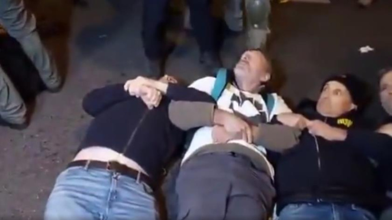Siyonist rejimin Kanal 12 televizyonu, protestocuların Habima Meydanı'ndan Began Caddesi'ne doğru ilerlediğini ve hükümetin feshedilmesini ve Gazze'deki direnişle esir takası anlaşması imzalanmasını talep ettiklerini duyurdu.