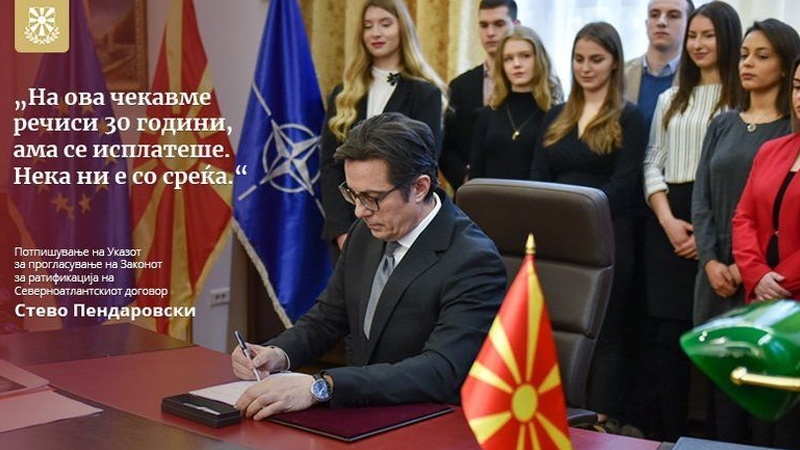 Kuzey Makedonya Cumhurbaşkanı Stevo Pendarovski NATO’ya katılma belgesini imzaladı.