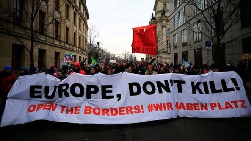 Alman göstericiler Başkent Berlin'de Yunanistan ve Türkiye sınırlarında sıkışıp kalan mültecilere destek verdi.