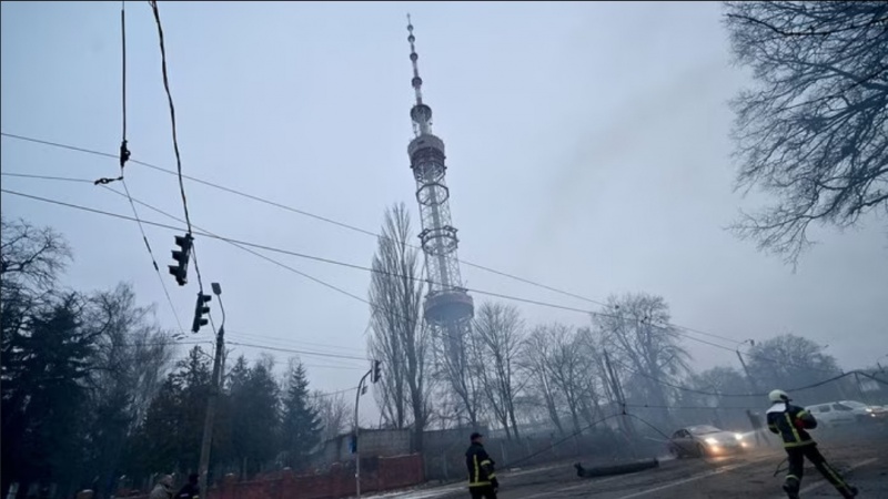 Ukrayna Acil Durumlar Servisinden yapılan açıklamaya göre, Kiev'deki Şevçenko bölgesinde bulunan televizyon kulesi vuruldu.