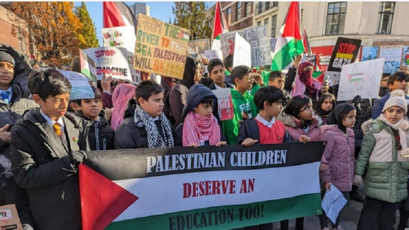 İngiltere'nin dört bir yanından binlerce öğrenci, Siyonist rejimin Gazze halkını katletmesini protesto etmek ve mazlum Filistin halkıyla dayanışma ilan etmek için Cuma günü sınıflarından ayrılarak yürüyüş yaptı.