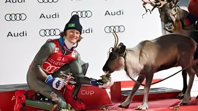 Associated Press: Bir Brezilyalı kayakçı, Finlandiya’da düzenlenen Erkekler Alp Disiplini Dünya Kupası yarışlarında kazandığı zaferin ardından bir ren geyiğine yem verdi.