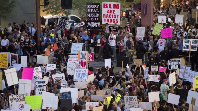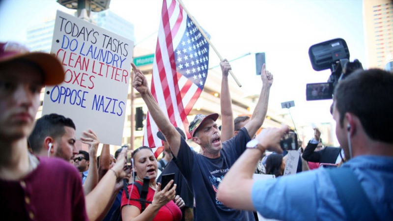Trump Phoenix kentinde Amerika'lı beyazların Charlotsville kentindeki ırkçı eylemleriyle ilgili açıklamalarını tekrarlayarak, tüm tarafları söz konusu hadisede kusurlu olmakla suçlamıştı.
