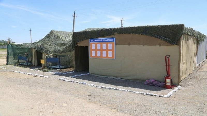 Марказий ҳарбий округ ҳарбий хизматчилари томонидан Сирдарё вилояти Сардоба туманида 2 май куни вақтинча жойлашиш учун чодир шаҳарча тикланган эди.