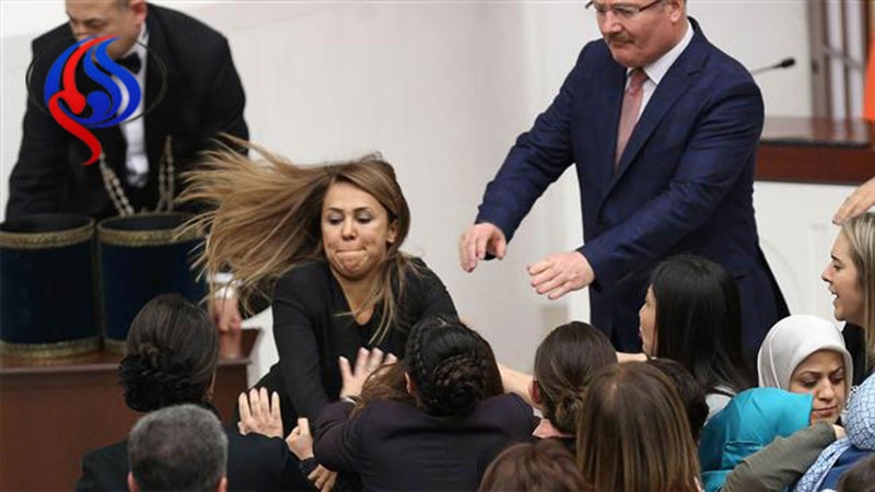 Туркия парламентида аёл намояндани калтаклашди.(ВИДЕО)