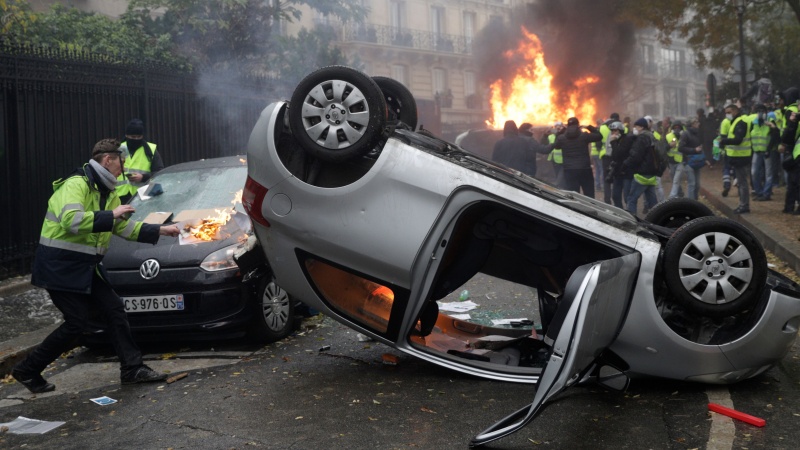 Францияда 17 ноябрдан "сариқ нимчалилар" намойишлари бошланганди. Улар хусусан, бензин нархи оширилишига ҳам қарши чиқишганди. Париждаги намойишларда полиция билан тўқнашувлар содир бўлди, машиналарга ўт қўйилди. Тартибсизликлар давомида 412 киши ҳибсга олинди.