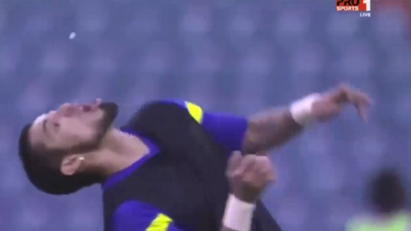Арабистоннинг Ан-Наср командаси уйинчисининг сақич билан қилган ғалати ҳаракатлари