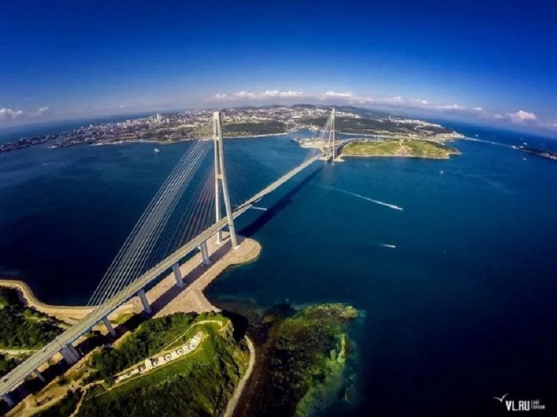 Владивостокда қад ростлаган кабелли кўприкнинг умумий узунлиги 3100 метрни ташкил этади. Кўприк 2012 йилда очилган. Лойиҳанинг умумий қиймати 1 млрд доллар.
