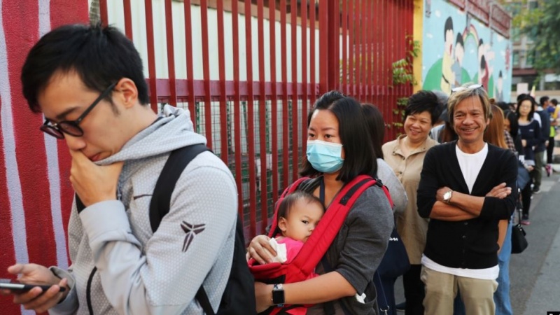 伊朗华语台消息:香港民众星期天在部分投票站提早排队投票。