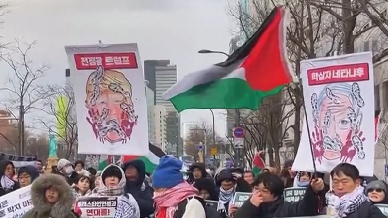 伊朗华语台消息: 韩国首都首尔数千民众举行示威支持加沙人民并呼吁人道主要援助送到加沙。