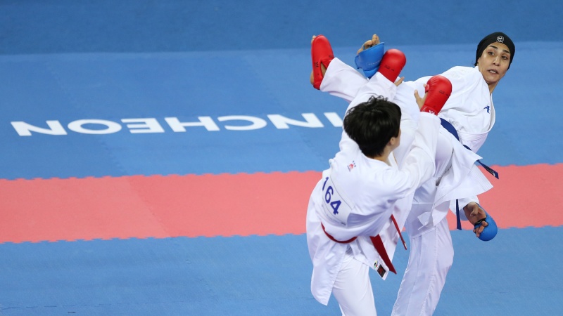 伊朗华语台消息:伊朗空手道女选手汉米德·阿巴斯·阿里在晋级巴黎一级空手道超级的联赛决赛击败其土耳其对手获得金牌。
