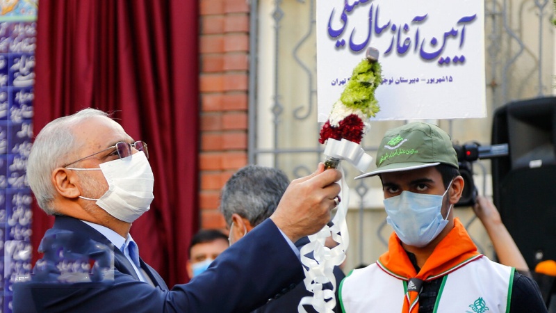 伊朗华语台消息:今日(周六)在举行的视频会议上,伊朗新学期的校铃响起,伊朗总统和教育部长出席此次视频会议。