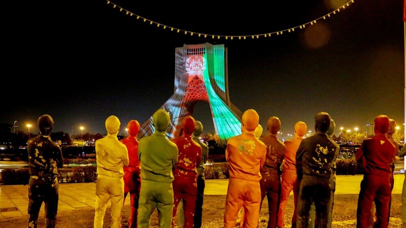 这种照明(视频映射)是周四晚上在德黑兰的自由塔上进行的,阿富汗驻伊朗大使阿卜杜勒·加弗尔·利瓦尔也参加了该仪式。