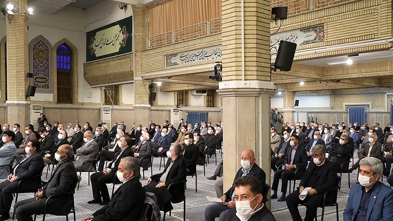 伊朗伊斯兰革命最高领袖在伊玛目霍梅尼侯赛尼亚接见部分伊朗企业家、经济和工业官员。
