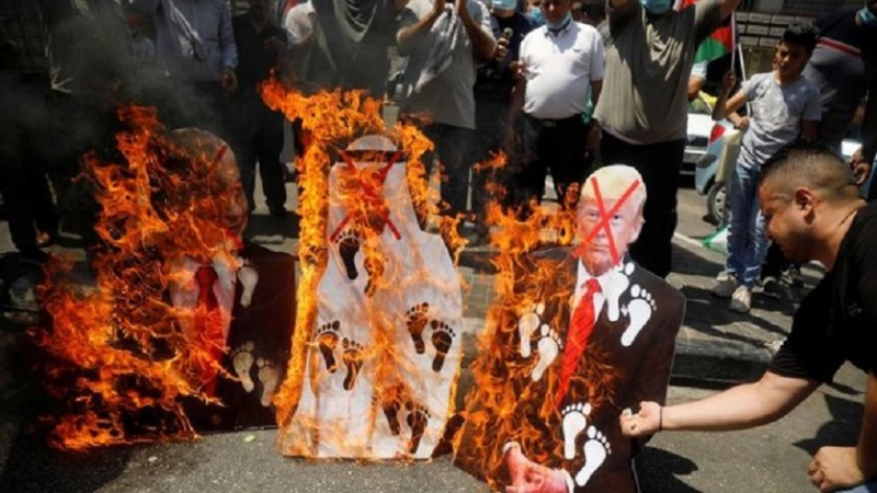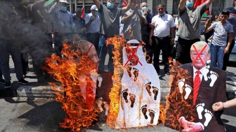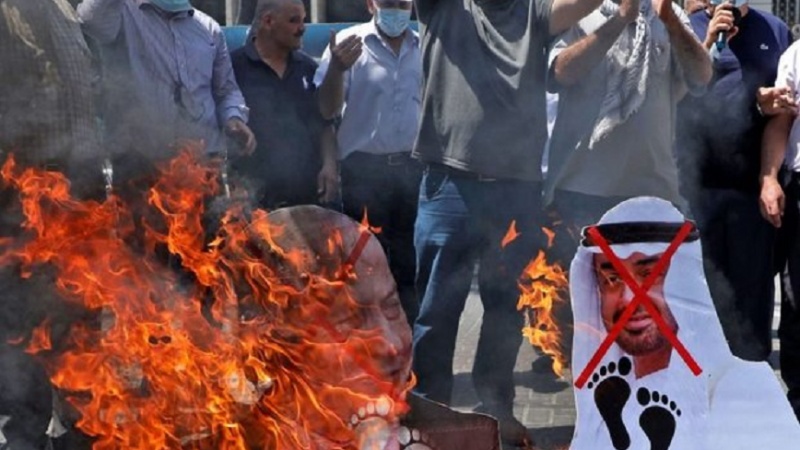西岸人民通过烧毁阿联酋国旗,对犹太复国主义政权与阿联酋的关系正常化协议对阿联酋统治者表达愤怒和厌恶。