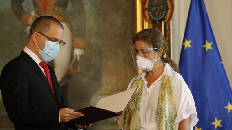 委内瑞拉驻欧盟使团团长克劳迪娅·萨莱诺·卡尔德拉在社交媒体上回应称其与欧盟交往时保持清醒和尊敬,但是“祖国的独立和主权不容谈判,委内瑞拉必须得到尊重”。