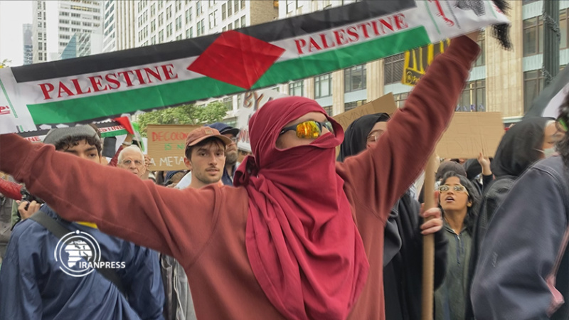 伊朗华语台消息:数百名美国公民在纽约和华盛顿举行聚会声援巴勒斯坦人民。